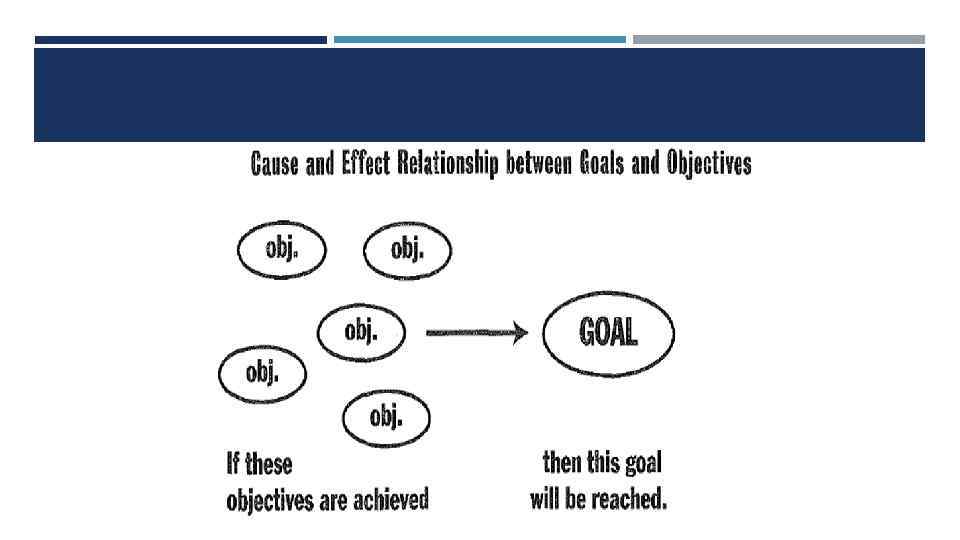 OBJECTIVES VS GOALS Objectives are statements about how the goals will be achieved A cause and effect relationship between goals and objectives Goals are more general and objectives more specific Goals are long-term, and objectives are short-term