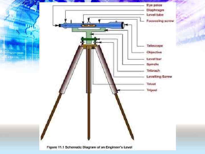 Levelling Instruments Level: A combination of telescope, level tube, levelling head and tripod Types: a) b) c) d) e) Dumpy Level Wye Level Reversible Level Tilting Level Automatic Level