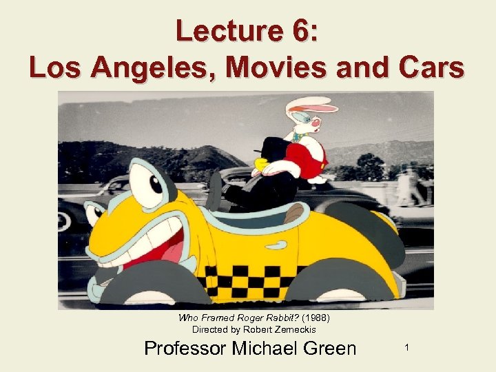 Lecture 6: Los Angeles, Movies and Cars Who Framed Roger Rabbit? (1988) Directed by Robert Zemeckis Professor Michael Green 1