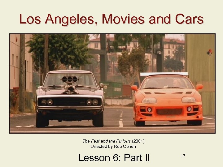 Los Angeles, Movies and Cars The Fast and the Furious (2001) Directed by Rob Cohen Lesson 6: Part II 17