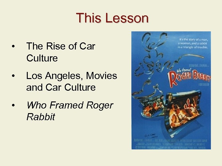 This Lesson • The Rise of Car Culture • Los Angeles, Movies and Car Culture • Who Framed Roger Rabbit