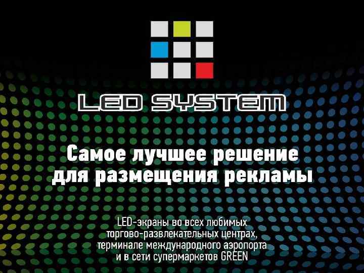 Led SYSTe. M Med. IA n n n – Цифровое качество изображения и специальный вещательный формат. Системы плазменных панелей и Led дисплеев по всей площади ТРЦ и супермаркетов дают максимальную возможность эффективно располагать информацию и рекламу об услугах и товаре. Суммарная ротация в формате следующих пакетов: «Эконом» -120 раз в день, «Стандарт» - 240 раз в день , в формате «Бизнес» - 360 раз в день на каждом объекте. Присутствие информации и рекламы в местах скопления людей дает Вам возможность методично формировать своего потребителя и работать с ним изо дня в день. Многие компании развитых стран признали факт, что локальные телевизионные системы есть универсальный и гибкий инструмент рекламно-информационного воздействия. Реклама на мониторах в супермаркетах принципиально новая рекламная услуга, позволяющая осуществлять контакт с покупателем или клиентом, эффективное воздействие и позитивное отношение к рекламируемому бренду.