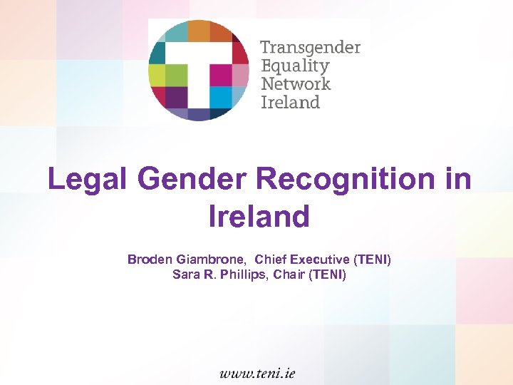 Legal Gender Recognition in Ireland Broden Giambrone, Chief Executive (TENI) Sara R. Phillips, Chair (TENI)