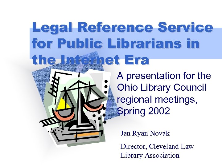 Legal Reference Service for Public Librarians in the Internet Era A presentation for the Ohio Library Council regional meetings, Spring 2002 Jan Ryan Novak Director, Cleveland Law Library Association