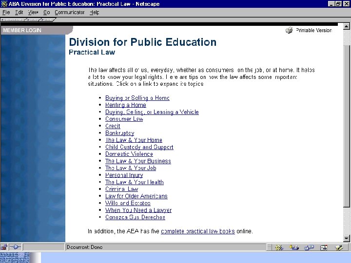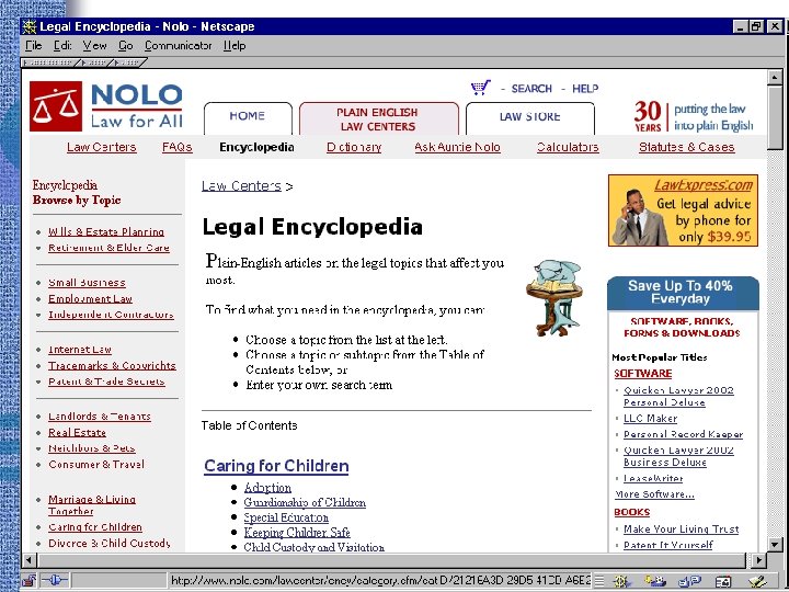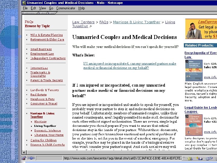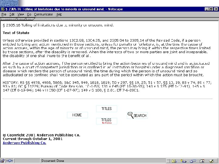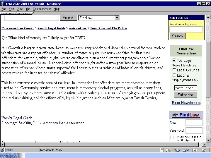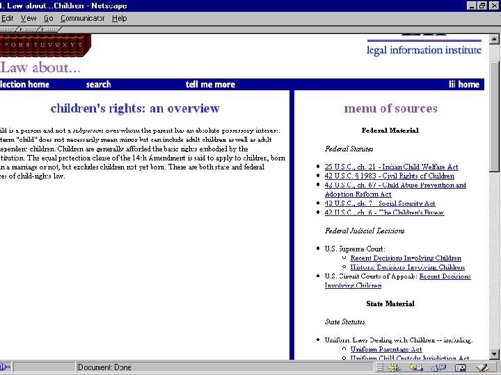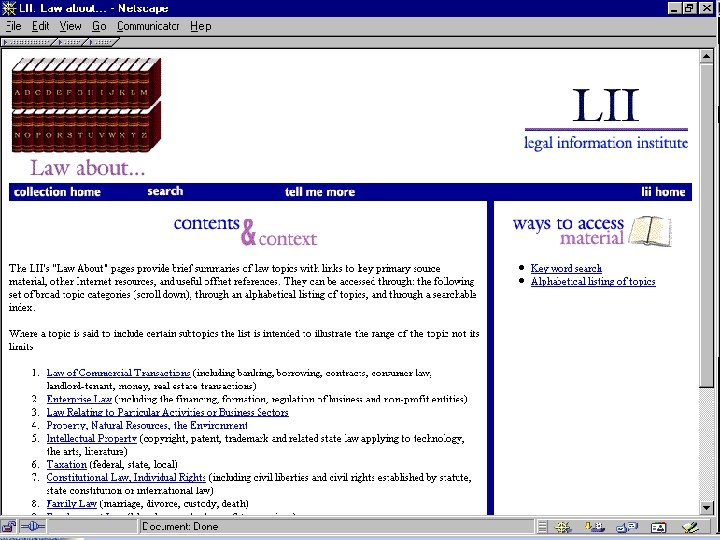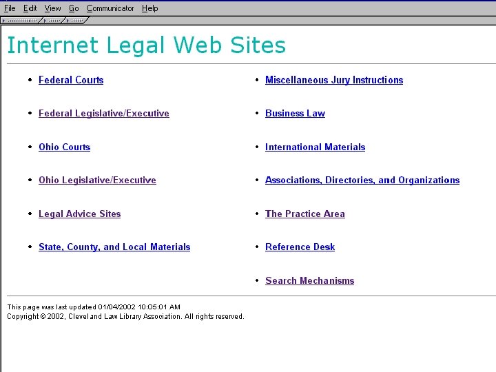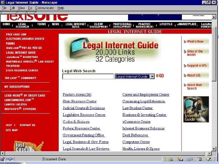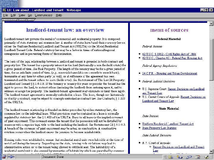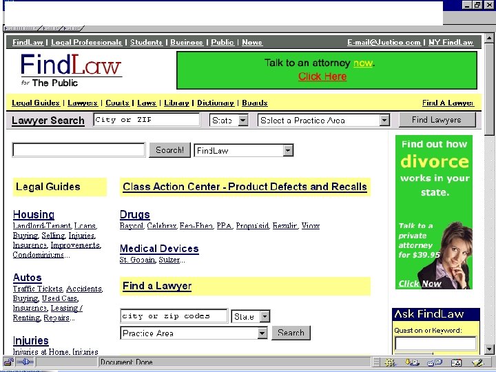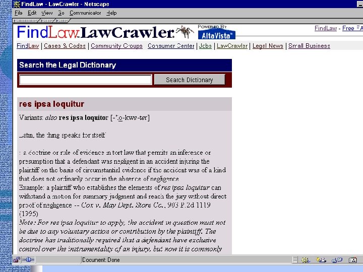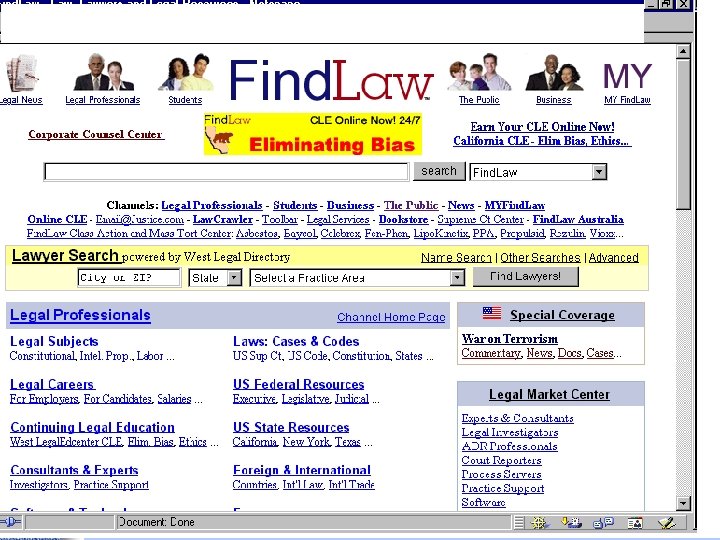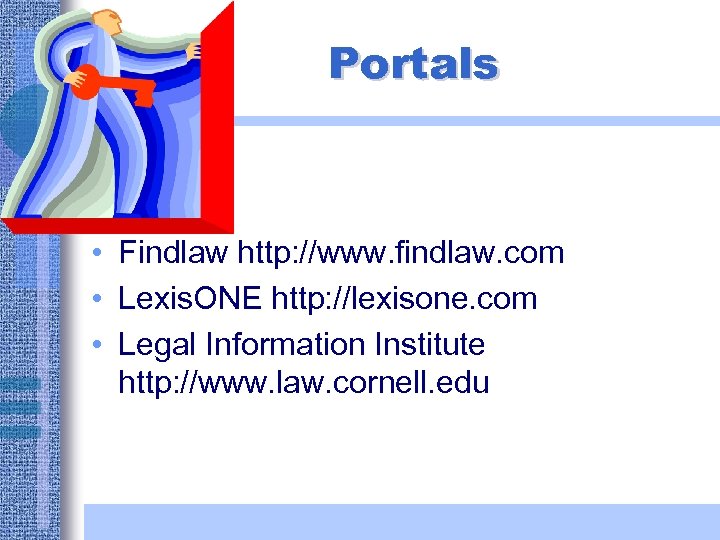 Portals • Findlaw http: //www. findlaw. com • Lexis. ONE http: //lexisone. com • Legal Information Institute http: //www. law. cornell. edu