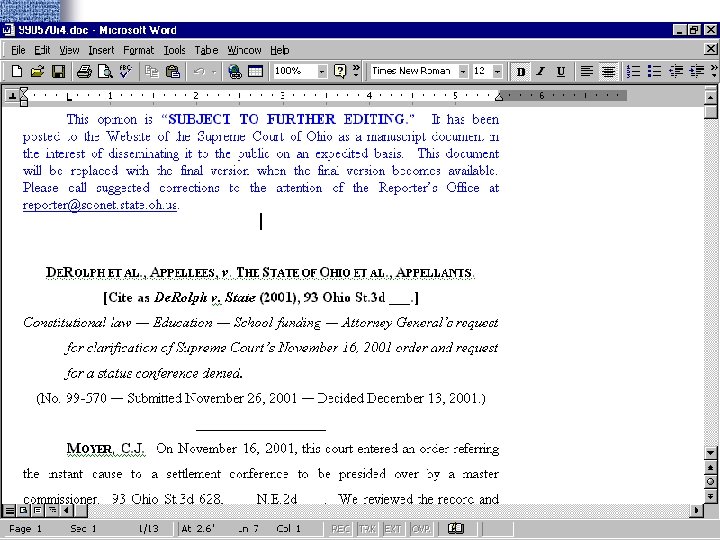 Ohio Case Law: • Specific cases by citation • Specific cases when only some information is available • Cases on a subject • The “best case”