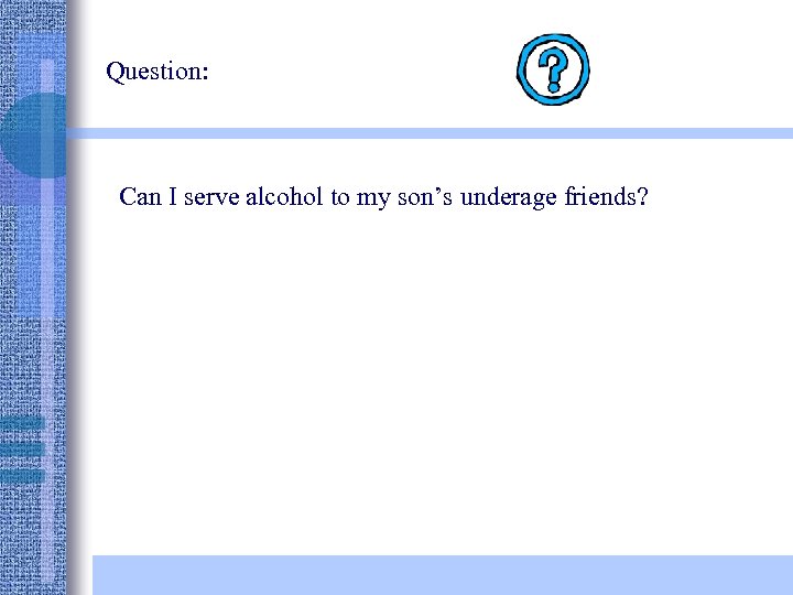 Question: Can I serve alcohol to my son’s underage friends?