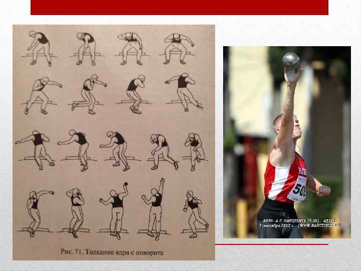 Вспомогательные части техники метания I. диска: II. молота: 1. 2. держание диска исходное положение и предварительные действия поворот финальное усилие торможение 1. 2. 3. 4. 5. держание молота исходное положение и предварительное вращение молота повороты метателя с молотом финальное усилие торможение