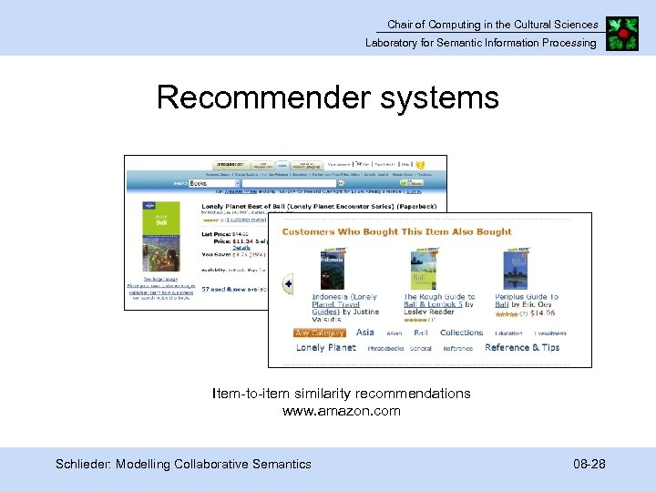 Chair of Computing in the Cultural Sciences Laboratory for Semantic Information Processing Recommender systems Item-to-item similarity recommendations www. amazon. com Schlieder: Modelling Collaborative Semantics 08 -28