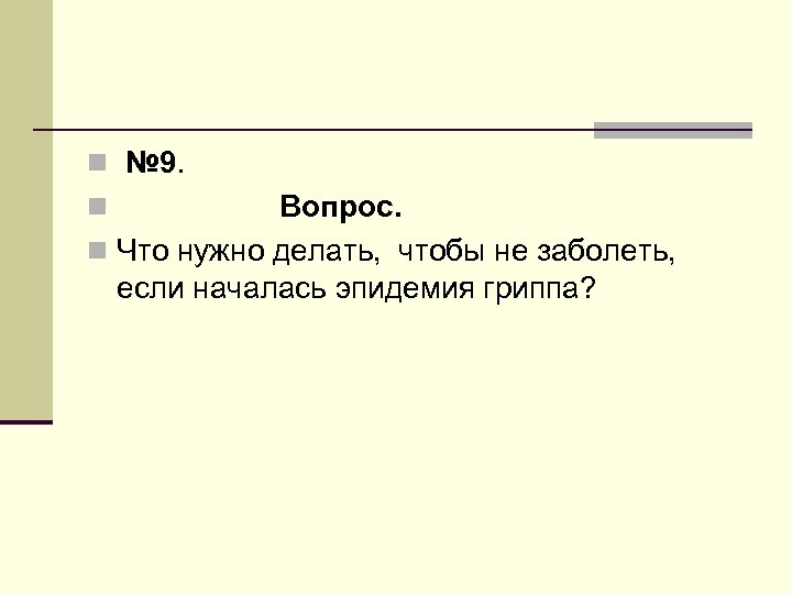n № 9. Вопрос. n Что нужно делать, чтобы не заболеть, если началась эпидемия гриппа? n