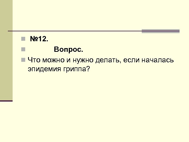 n № 12. Вопрос. n Что можно и нужно делать, если началась эпидемия гриппа? n
