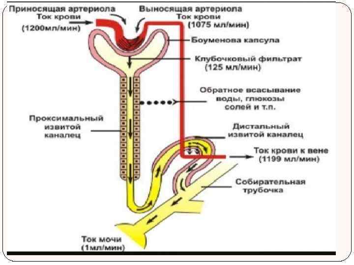 Собирательная трубка начинается в корковом веществе от дистального извитого канальца и идет вниз через мозговой слой, где объединяется с несколькими другими собирательными трубками в более крупные протоки, называемые протоками Беллини. Завершается мочеобразование всобирательных трубках. Здесь происходят зависимая от минералокортикоида альдостерона реабсорбция ионов натрия и секреция ионов калия. Проницаемость стенок собирательной трубки для воды и мочевины регулируется антидиуретическим гормоном (АДГ), и благодаря этой регуляции собирательная трубка участвует вместе с дистальным извитым канальцем в образовании гипертонической или гипотонической мочи в зависимости от потребности организма в воде.