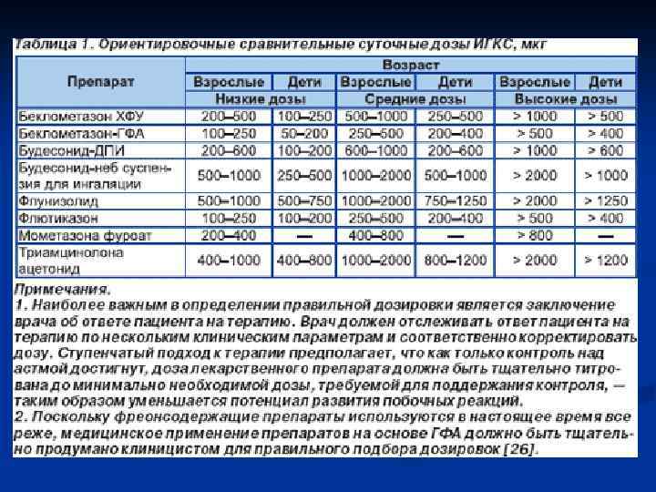 Лекарственные средства БАЗИСНОЙ терапии БА (для контроля БА) 1) Ингаляционные глюкокортикостероиды (ИГКС) 2) Комбинации ИГКС + ингаляционные длительно действующие β-2 -агонисты адренорецепторов (ИГКС + ДДБА) 3) Антагонисты лейкотриеновых рецепторов (антилейкотриеновые) 4) Кромоны 5) Теофиллин замедленного высвобждения (пролонгированные препараты теофиллина) 6) Системные глюкортикостероиды (системные ГКС) 7) Антитела к Ig. E (омализумаб) 8) При ночной астме – ингаляционный М-холинолитик или комбинация его с быстро действующим β 2 -адреномиметиком (агонистом β 2 -адренорецепторов)