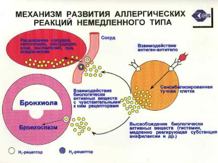 РЕЦЕПТОРЫ Ig. E • FcεR I – обладают высоким аффинитетом к Ig. E, локализованы в тучных клетках и базофилах • FcεR II – обладают незначительным аффинитетом к Ig. E, локализованы в клетках «воспаления» (эозинофилах, лимфоцитах, мононуклеарных фагоцитах и т. д. ) ü Рецепторы Ig. E участвуют в формировании аллергического бронхоспазма и ринита