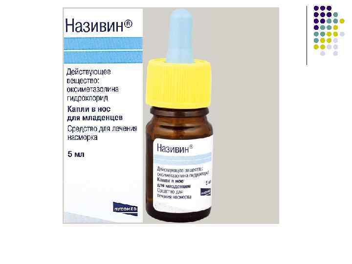 НАФАЗОЛИН (нафтизин) Naphazolini nitras Фармакологические эффекты: l повышение АД l местное действие на сосуды Показания: l острый ринит l ларингит l носовые кровотечения l конъюктивит Форма выпуска: l 0, 05% - 0, 1% р-ры во флаконах по 10 мл