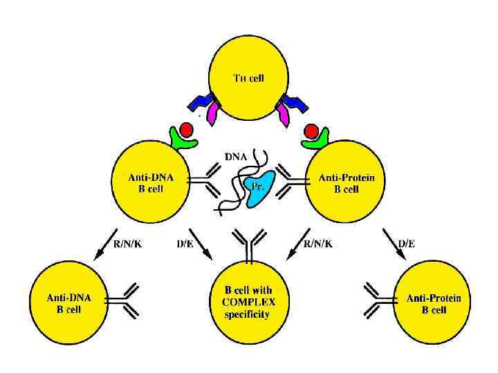 Role of B cells in the pathogenesis of rheumatoid arthritis The rheumatoid factors form large antigen/antibody complexes which may enhance the process of joint destruction. The poor prognosis of rheumatoid factor-positive patients is indicative of the critical role of immunoglobulin complexes in the continuous stimulation of the immune system and thus of the inflammatory processes. Gause A, Berek C. Bio. Drugs 2001; 15(2): 73 -9 Sjogren's syndrome. i) defective apoptosis could lead to lymphoid cell accumulation and chronic inflammation in exocrine glands; ii) increased apoptosis of epithelial cells might explain the loss of secreting epithelium; and iii) orderly destruction of cellular components might induce autoantibody production. Bolstad AI, Jonsson R. Antineutrophil cytoplasmic antibodies induce human monocytes to produce oxygen radicals in vitro. Antineutrophil cytoplasmic antibodies (ANCA) are believed to play a pathogenetic role in necrotizing small-vessel vasculitis. Normal nonspecific Ig. G or their corresponding F(ab')2 fragments induced no release or very little release of oxygen radicals. Preincubation of monocytes with the Fcy receptor type II-blocking monoclonal antibody IV. 3 before addition of ANCA greatly reduced formation of oxygen radicals Weidner S, et al. Arthritis Rheum 2001 Jul; 44(7): 1698 -706 Immunopathogenic and clinical relevance of antibodies against myelin oligodendrocyte glycoprotein (MOG) in Multiple Sclerosis Immunopathogenic role of antibodies against myelin oligodendrocyte glycoprotein (MOG) and other myelin/nonmyelin targets in multiple sclerosis, as well as possible clinical implications for prognosis and therapy in the future. Berger T, Reindl M. J Neural Transm Suppl 2000; (60): 351 -60