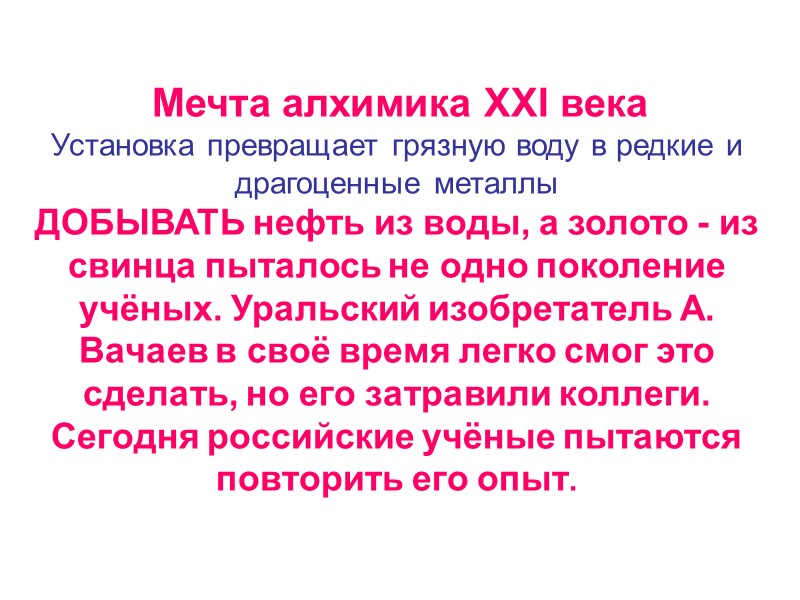 1 кубический сантиметр вакуума обеспечит планету электроэнергией на 10 лет. Г.И. объясняет, что платформа едет за счет внутренних сил. Хотя по всем правилам должна стоять – ведь равные по массе штанги с шарами обязаны друг друга уравновешивать. Выдвигалось логичное возражение: платформа ползет за счет трения. Изобретатель смазал дорожку маслом, получил нулевое трение, а она как двигалась, так и движется. Шипов уже сделал такую систему в форме лодки. Безмоторный катерок добил скептиков. Однако каталка, едущая без внешнего привода, уже не игрушка, а двигатель чего угодно: автомобиля, самолета, катера, подводной лодки, космического корабля. Наращивай мощность, оформляй конструктивно – и вперед, в просторы Вселенной, в глубины океана или в глубь живой клетки. ЯПОНИЯ УЖЕ ЭКОНОМИТ БЕНЗИН.