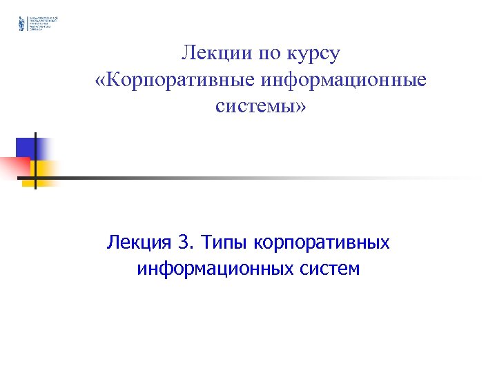 Лекции по курсу «Корпоративные информационные системы» Лекция 3. Типы корпоративных информационных систем