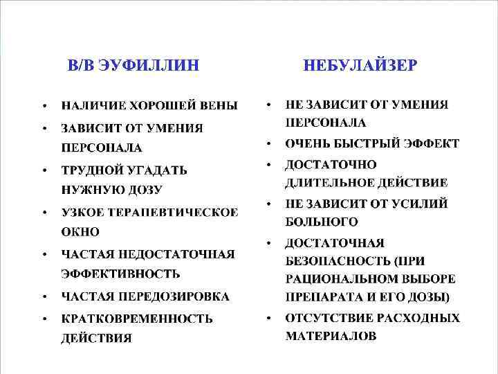 при отсутствии эффекта и отсутствии небулайзера вызвать Скорую медицинскую помощь По назначению врача медсестра введёт: преднизолон 60– 90 мг или другие глюкокортикостероиды эуфиллин 2, 4% 5 -10 мл в вену адреналин 0, 1% - 0, 5 мл подкожно (при угрозе остановки дыхания)
