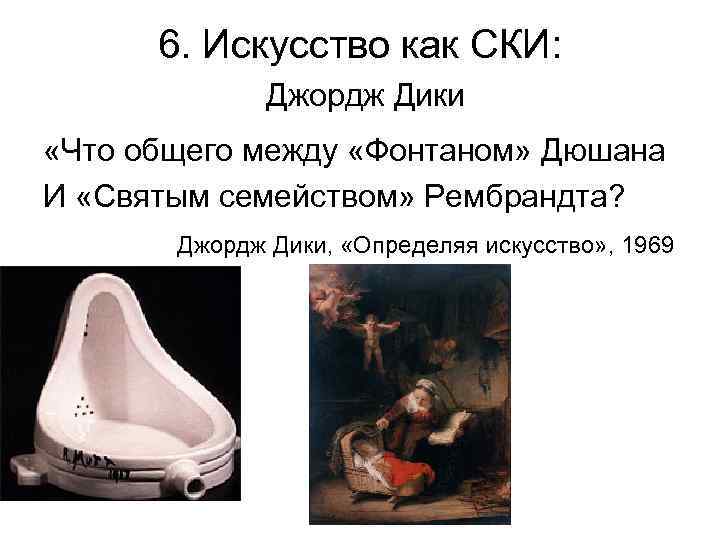 6. Искусство как СКИ: Джордж Дики «Что общего между «Фонтаном» Дюшана И «Святым семейством» Рембрандта? Джордж Дики, «Определяя искусство» , 1969