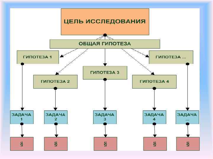 Цель исследования • Цель исследования – это переформулированная проблема. • Цель диссертации - выявление некоторых новых фактов и закономерностей, уточнение раннее известных фактов, но проблемных и недостаточно изученных. • Достижение цели позволяет получить новую информацию, на основании чего формулируются выводы и рекомендации по результатам исследования. • Формулировка проблемы и цели исследования влечет за собой выбор объекта, предмета и гипотезы.
