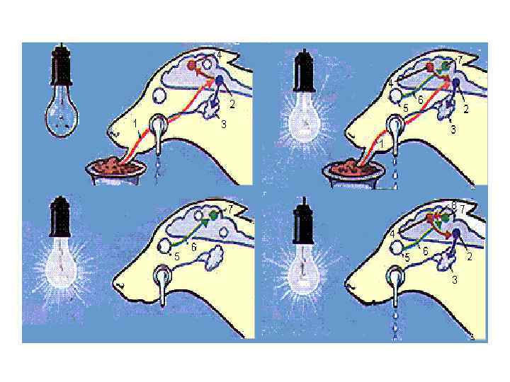 Выделение слюны по механизму безусловного рефлекса • Используются рецепторы: • Контактные – Вкусовые (хеморецепторы) – Тактильные (осязательные) рецепторы – Терморецепторы (холодовые, тепловые) – Механорецепторы жевательных мышц • Дистантные - обонятельные