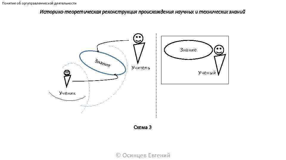 Понятие об оргуправленческой деятельности Историко-теоретическая реконструкция происхождения научных и технических знаний Знание Знан ие Учитель Ученик Схема 3 © Осинцев Евгений Ученый