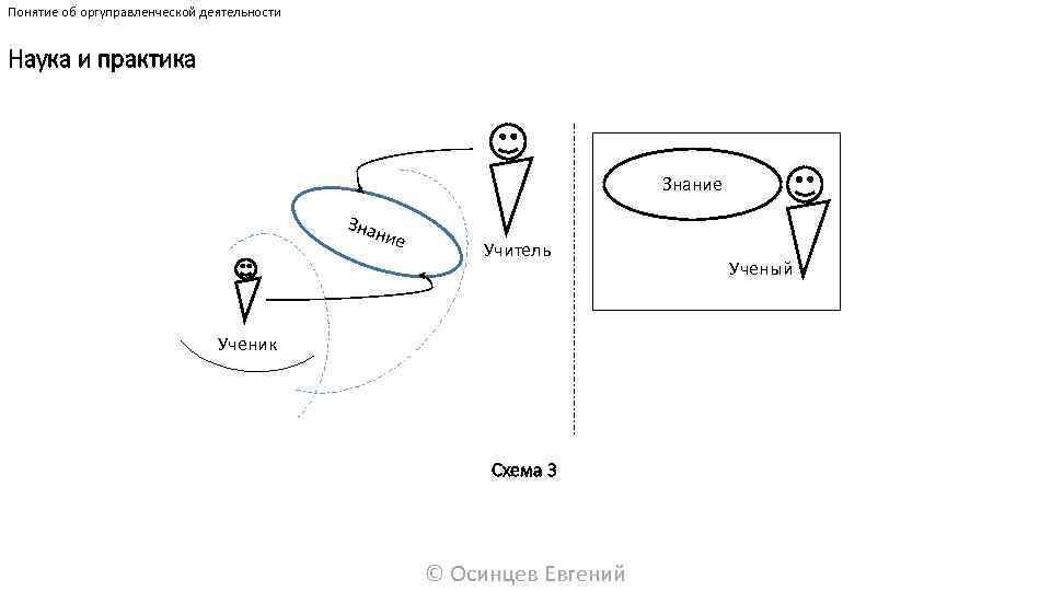 Понятие об оргуправленческой деятельности Наука и практика Знание Знан ие Учитель Ученик Схема 3 © Осинцев Евгений Ученый