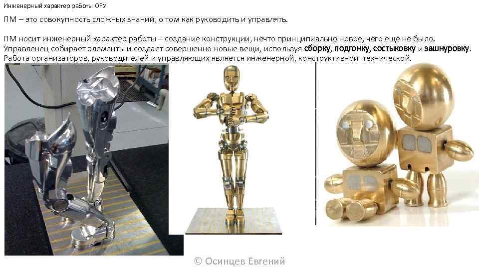 Инженерный характер работы ОРУ ПМ – это совокупность сложных знаний, о том как руководить и управлять. ПМ носит инженерный характер работы – создание конструкции, нечто принципиально новое, чего ещё не было. Управленец собирает элементы и создает совершенно новые вещи, используя сборку, подгонку, состыковку и зашнуровку. Работа организаторов, руководителей и управляющих является инженерной, конструктивной, технической. © Осинцев Евгений
