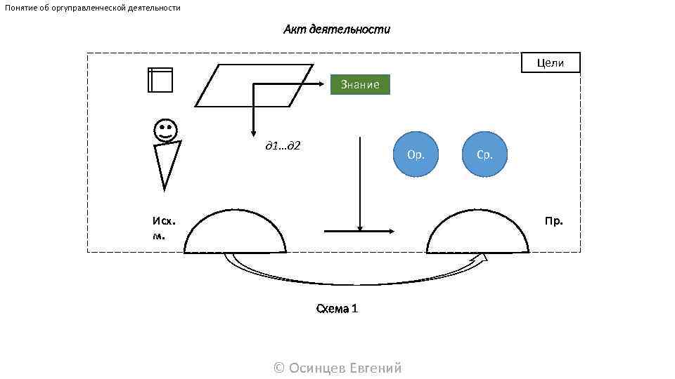Понятие об оргуправленческой деятельности Акт деятельности Цели Знание д 1…д 2 Ор. Исх. м. Ср. Пр. Схема 1 © Осинцев Евгений