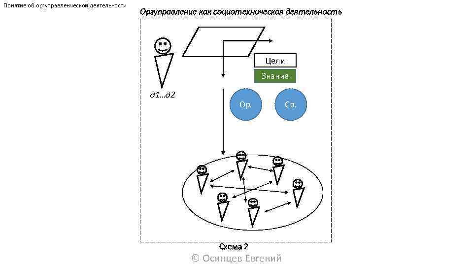 Понятие об оргуправленческой деятельности Оргуправление как социотехническая деятельность Цели Знание д 1…д 2 Ор. Схема 2 © Осинцев Евгений Ср.