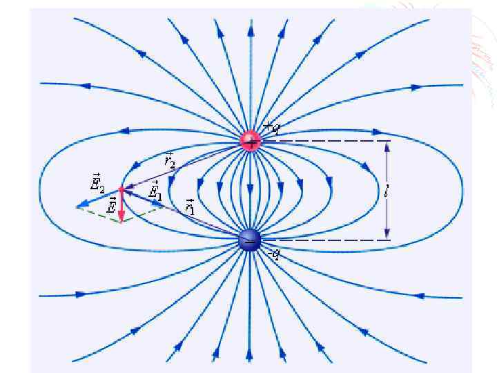 Дипольный момент • вектор, направленный от отрицательного заряда к положительному. • Диполь может служить электрической моделью многих молекул. • Электрическим дипольным моментом обладает, например, нейтральная молекула воды (H 2 O), так как центры двух атомов водорода располагаются не на одной прямой с центром атома кислорода, а под углом 105°. Дипольный момент молекулы воды p = 6, 2· 10– 30 Кл · м.