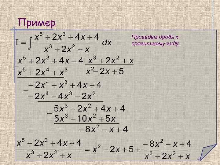 Пример Приведем дробь к правильному виду. 11