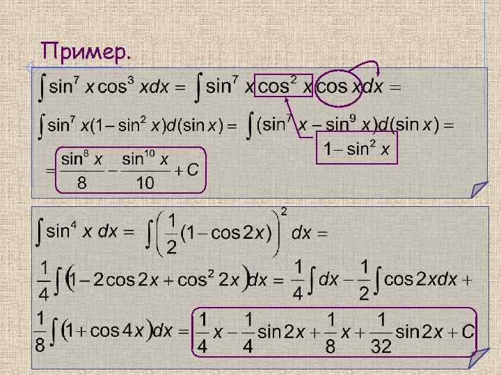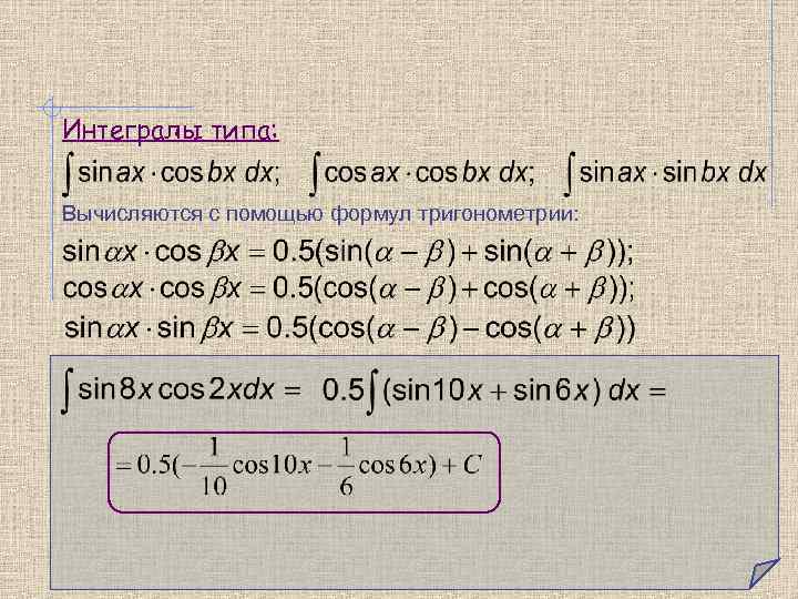 Интегралы типа: Вычисляются с помощью формул тригонометрии:
