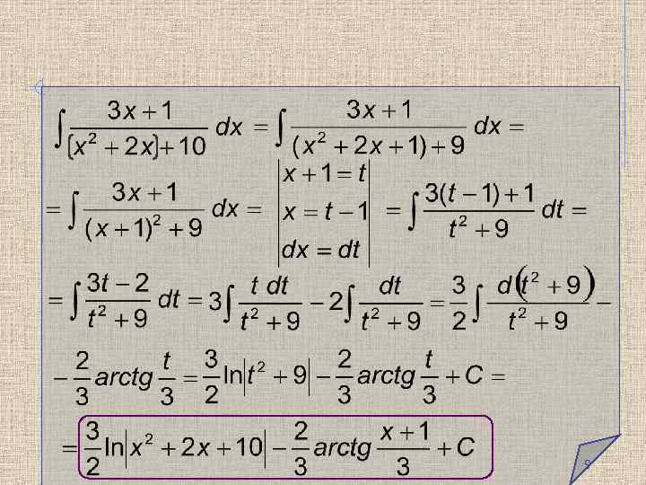 Интегрирование простейших дробей Найдем интегралы от простейших рациональных дробей: Интегрирование дроби 3 типа рассмотрим на примере. 8