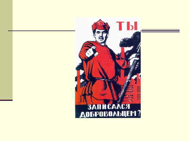 Залог победы "красных": n переход к всеобщей воинской повинности, n введение института военных комиссаров, n установление жесткой дисциплины, n единое командование, n политика “военного коммунизма”.