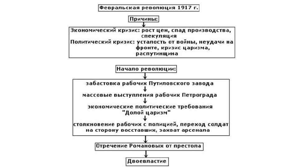 Контрольные вопросы: 1. В чем основные причины февральских событий в Петрограде? 2. Почему правительство, созданное после отречения Николая II было названо «временным» . 3. Подумайте, в чем принципиальное различие в подходах к вопросу о выходе России из войны? 4. Почему в 1917 г. основная масса населения поддерживала идею Учредительного собрания. В чем суть этой идеи? 5. В чем было принципиальное расхождение Ленина со своими коллегами по партии, после того как он приехал в Петроград? 6. Какие причины привели в России к гражданской войне? 7. Какие события стали началом полномасштабных боевых действий? 8. Назовите основные фронты гражданской войны. Когда и где они возникали? 9. Чем можно объяснить поражение белых армий? 10. Какие факторы способствовали победе большевиков в Гражданской войне?