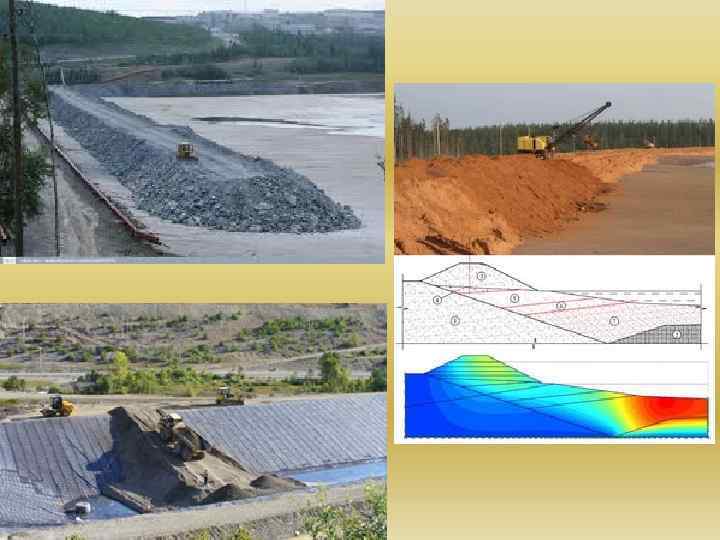 Способы намыва дамб Конструктивно заполнение хвостохранилище осуществляется двумя способами: üНасыпная дамба Возводится до начала эксплуатации хвостохранилища. Выполняет роль как упорной , так и дренажной призмы намывной ограждающей дамбы. üНамывная дамба Проектирование необходимо производить с учетом фракционирования хвостов в поперечном сечении сооружения и их физико-механических свойств, гранулометрического свойства.