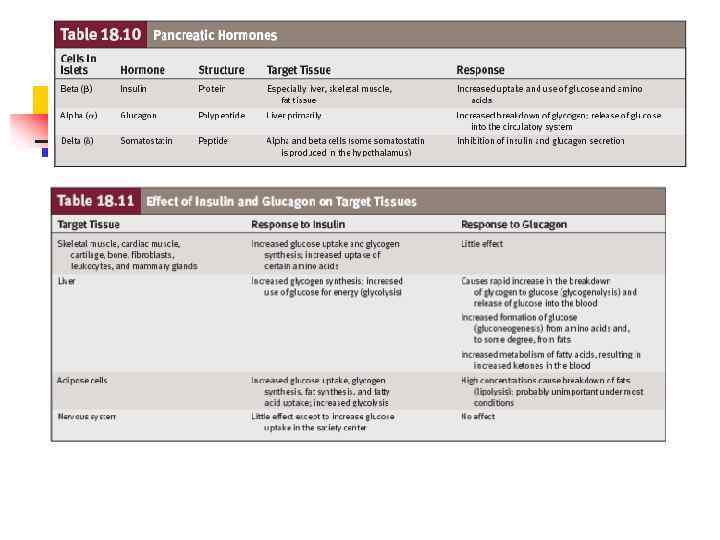 n Инсулин — главный регулятор энергетического обмена в организме — контролирует обмен углеводов (стимуляция гликолиза и подавление глюконеогенеза), липидов (стимуляция липогенеза), белков (стимуляция синтеза белка), а также стимулирует пролиферацию клеток (митоген). Основные органы–мишени инсулина — печень, скелетные мышцы и жировая ткань.