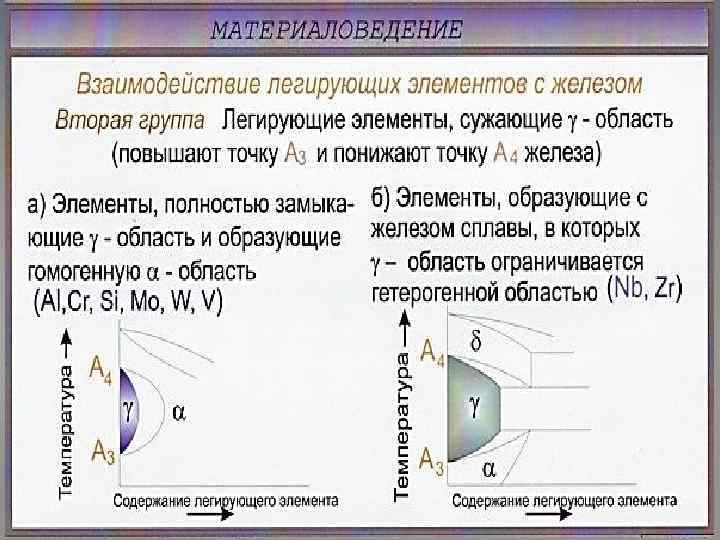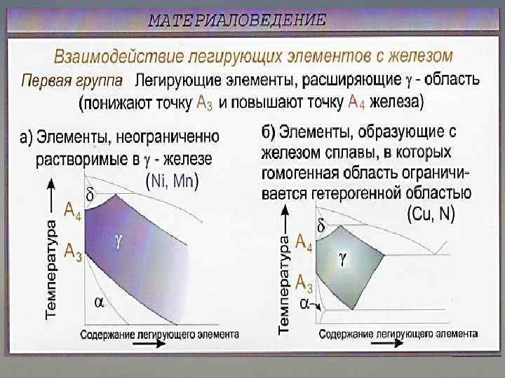 Ni, Mn Cr, W, Mo, Ti, V, Si Влияние легирующих элементов на полиморфные превращения в железе