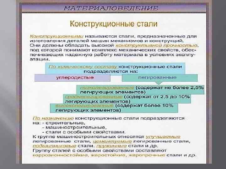 Классификация сталей по степени легирования 1. Малолегированные до 2, 5% 2. Среднелегированные от 2, 5 до 10% 3. Высоколегированные более 10%