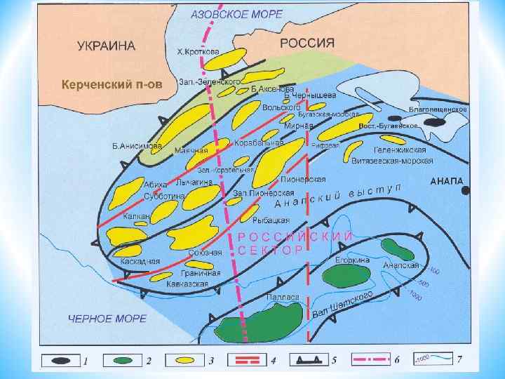 ПРИМЕР ОТРАЖЕНИЯ В МАГНИТНОМ ПОЛЕ РАЗРЫВНЫХ НАРУШЕНИЙ И ТРЕЩИНОВАТОСТИ ОСАДОЧНОЙ ТОЛЩИ НА КАРТАХ ВЫСОКОЙ ЧАСТОТЫ МАГНИТНОГО ПОЛЯ (ПРИДОННАЯ СЪЕМКА 5 М ОТ ДНА) РАЗРЫВНЫЕ НАРУШЕНИЯ СТРУКТУРНЫЙ ПЛАН КРОВЛИ МЙКОПА