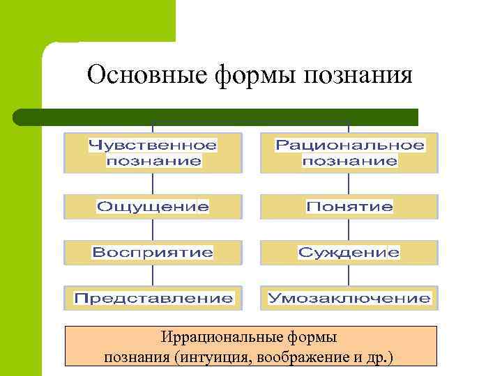 Основные формы познания Иррациональные формы познания (интуиция, воображение и др. )