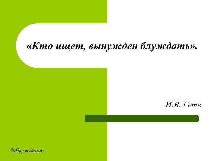 «Кто ищет, вынужден блуждать» . И. В. Гете Заблуждение