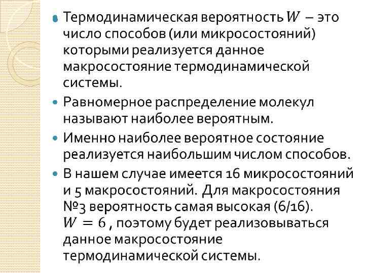 Способы реализации макросостояний Число способов Обычная вероятность A B P - 1, 2, 3, 4 1 1/16 1 2 3 4 2, 3, 4 1, 2, 3 4 4/16 1, 2 1, 3 1, 4 2, 3 2, 4 3, 4 2, 3 1, 4 1, 3 1, 2 6 6/16 1, 2, 3 1, 2, 4 1, 3, 4 2, 3, 4 4 3 2 1 4 4/16 1, 2, 3, 4 - 1 1/16