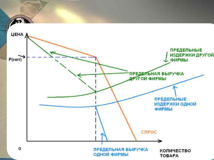 Теория игр в олигополии • • • Теория игр была разработана Дж. фон Нейманном и О. Моргенштерном в 1944 г. , ее дальнейшую разработку продолжил Дж. Нэш. Эта теория рассматривает поведение фирм на рынке как игру, причем имеются определенные правила игры, по результатам которой начисляются «призы» и «штрафы» . Участники игры определенно не знают стратегию конкурента, поэтому их поведение основано лишь на прогнозах. В модели олигополии фирма осуществляет оптимальную полити ку, ориентируясь на действия своих конкурентов, и предполагает, что конкуренты в отрасли будут поступать аналогичным образом. Данная концепция была сформулирована Нобелевским лауреатом Дж. Нэшем в 1951 г. и получила название «равновесие Нэша» . Фирмы «играют» , т. е. они принимают решение понизить или повысить цену, реклами ровать свою продукцию или нет и т. д. Условием равновесия является то, что если дана стратегия первого игрока, второму остается только повторить его стратегию.