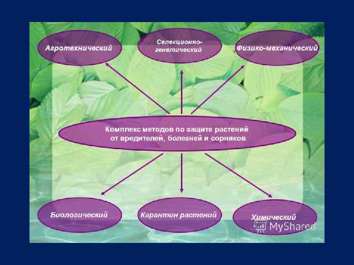 • Таким образом, интегрированная защита растений базируется • на биоценотическом подходе к применению химических средств • борьбы при максимальном сохранении и более интенсивном использовании • естественных врагов вредных организмов и других • факторов, ограничивающих их массовое размножение.