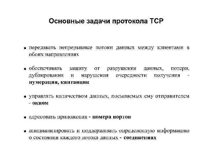 (IP 1, n 1) TCP-соединение Буфер отправления Буфер копий Буфер приема (IP 2, n 2) Буфер приема Окно Буфер отправления Окно Буфер копий Рис. 14. Система буферов TCP-соединения.