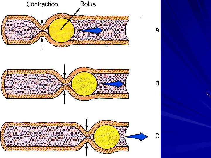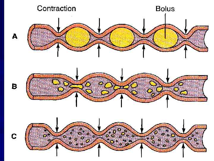 ПЕРИСТАЛЬТИКА ПУТЬ = 3 – 10 см v = 0. 5 – 2. 0 см/с РЕЗУЛЬТАТИВНАЯ v = 1 см/мин t=3– 5 ч