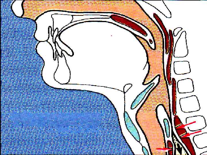 1. МЯГКОЕ НЕБО ЗАКРЫВАЕТ ХОАНЫ 2. НЕБНО-ГЛОТОЧНЫЕ СКЛАДКИ – САГИТТАЛЬНУЮ ЩЕЛЬ 3. ГОЛОСОВАЯ ЩЕЛЬ СМЫКАЕТСЯ, ГОРТАНЬ ПОДТЯГИВАЕТСЯ ВВЕРХ → НАДГОРТАННИК – КЗАДИ